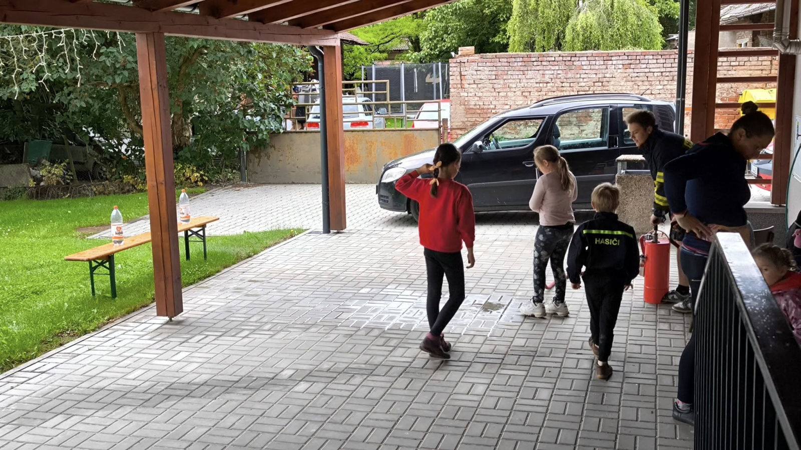 Venku pod střechou byla k dispozici džberová stříkačka. Proudem vody tak děti shazovaly připravené lahve. Za zapůjčení i s obsluhou děkujeme hasičům do Častolovic.